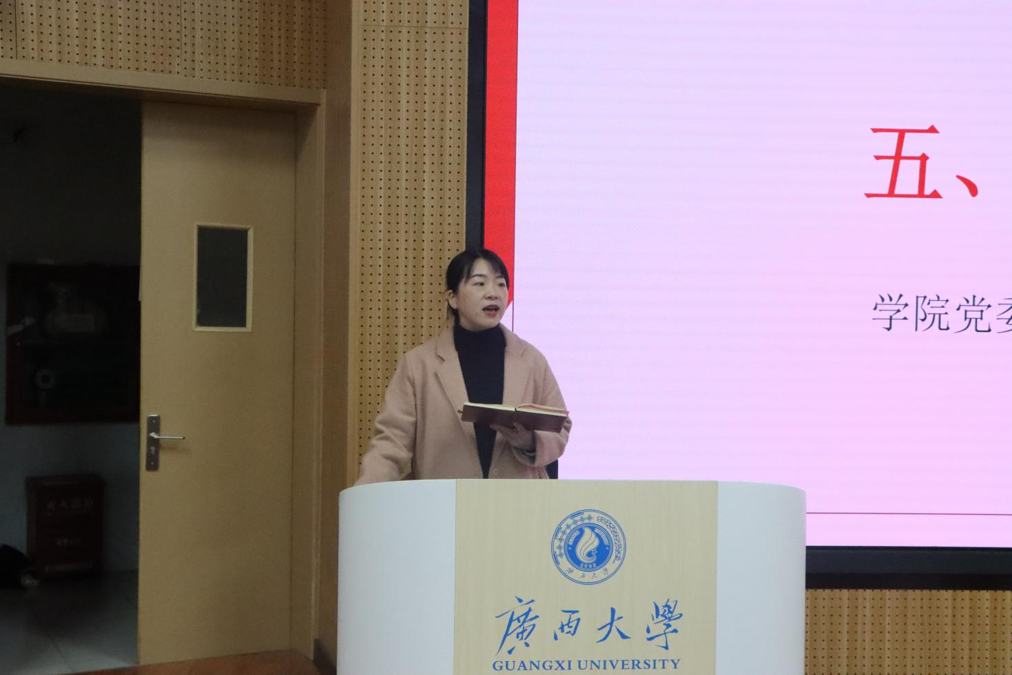/中国-东盟金融合作学院学工组在第十教学楼10A-305教室组织召开2023-2024学年秋季学期期末全院主要学生干部大会。院党委副书记陈卉娟、团委书记王海希、辅导员覃晓阳、刘威,以及院级团学组织主要学生干部、各班班长和团支书参加本次会议。
