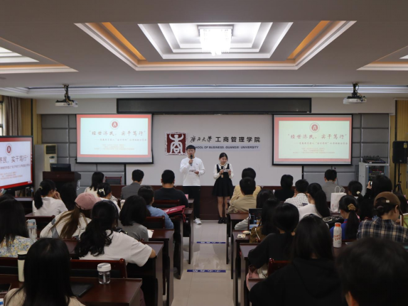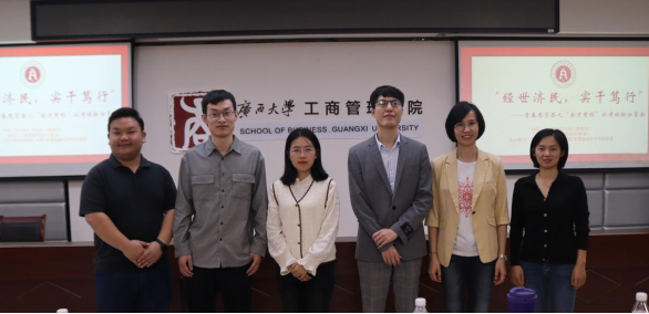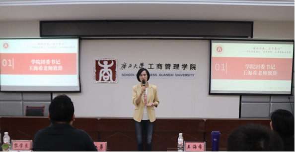 /中国-东盟金融合作学院在工商管理学院124教室举办“金才有约”主题沙龙活动,本次活动主题为“经世济民,实干笃行” 公考经验分享会。院团委书记王海希,团委副书记蒙江勇,学工组专职辅导员何湘桂出席本次活动。