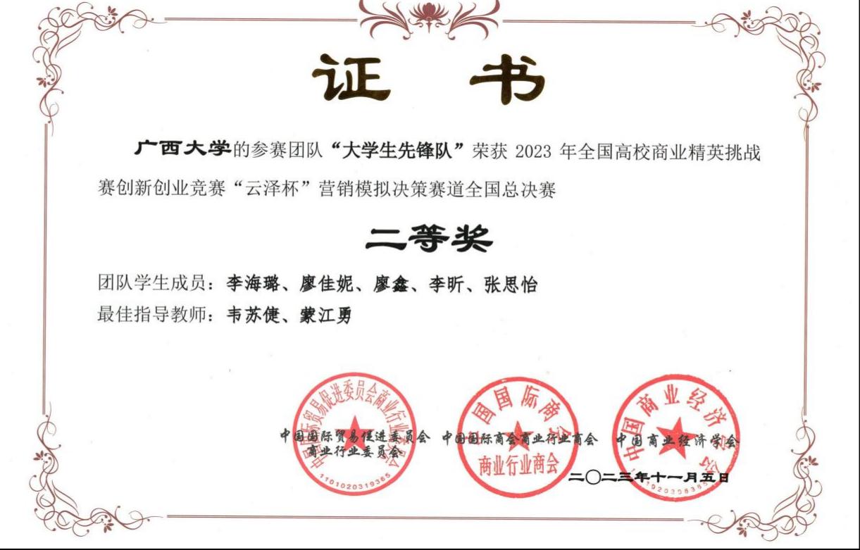近日,2023年全国高校商业精英挑战赛创新创业竞赛“云泽杯”营销模拟决策赛道全国总决赛落下帷幕。该赛项从校赛到全国总决赛共计2000多支队伍参赛,在全国预选赛中,麻豆瓜网