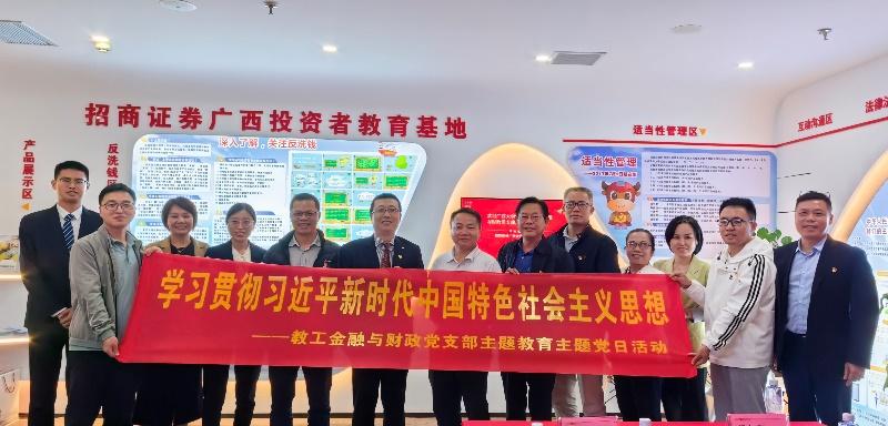 与招商证券广西公司进一步深化合作、开展党建+业务的深度融合、开展资本市场相关课题研究、金融人才创新培养与实习就业等方面开展了深度的交流,并达成了多个初步合作意向。在支部联建活动中,支部书记陈新建详细介绍了教工金融与财政党支部的建设情况和通过学习贯彻习近平新时代中国特色社会主义思想主题教育后所取得一系列成果,招商证券桂林营业部总经理、支部书记周毅围绕红色金融史领学了习近平新时代中国特色社会主义思想关于资本市场发展和金融支持实体经济的系列论述和思想理论。