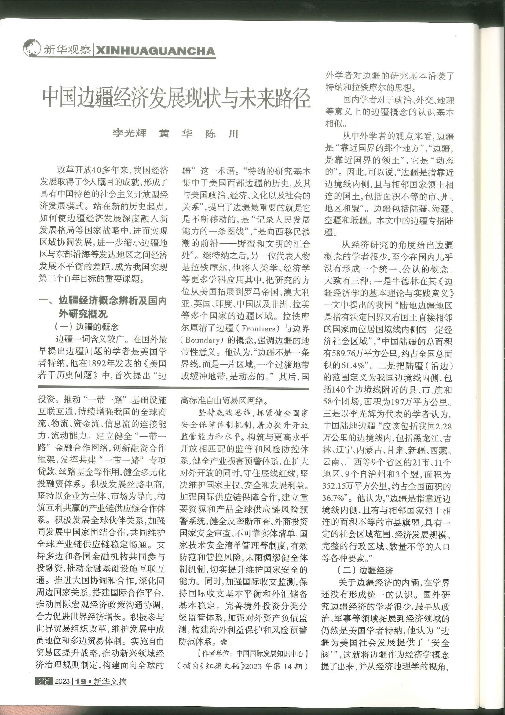 麻豆瓜网 李光辉教授、黄华博士研究生撰写的论文“中国边疆经济发展现状与未来路径”全文被《新华文摘》(2023年第19期)转载,该论文曾发表在《中国经济报告》(2023年第3期)。