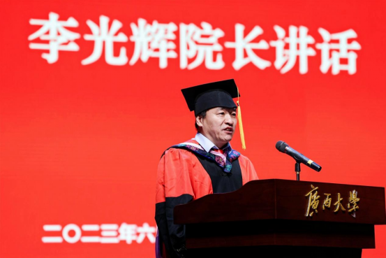 全体2023届毕业生讲话。他对毕业生们提出三点期望:一要厚植家国情怀,勇担时代使命,自觉听从党和人民召唤,自觉扛起属于自己的责任,以实际行动践行“请党放心,强国有我”的青春誓言;二要坚持终身学习的信念,书写无悔人生,既读有字之书,也读无字之书,在实践中锤炼过硬本领;三要勇于追梦,敢于拼搏,在这个伟大的时代以奋斗姿态激扬青春,不负时代,不负年华。他希望同学们能在这个伟大的时代中乘风破浪,在百舸争流中勇立潮头,在实现中华民族伟大复兴的中国梦的进程中成就辉煌的事业!李院长表示,毕业生们的身份即将在这一刻由学子转变为校友,无论身在何处,学院永远是大家的坚强后盾和精神家园,学院的大门永远向大家敞开,欢迎常回家看看!