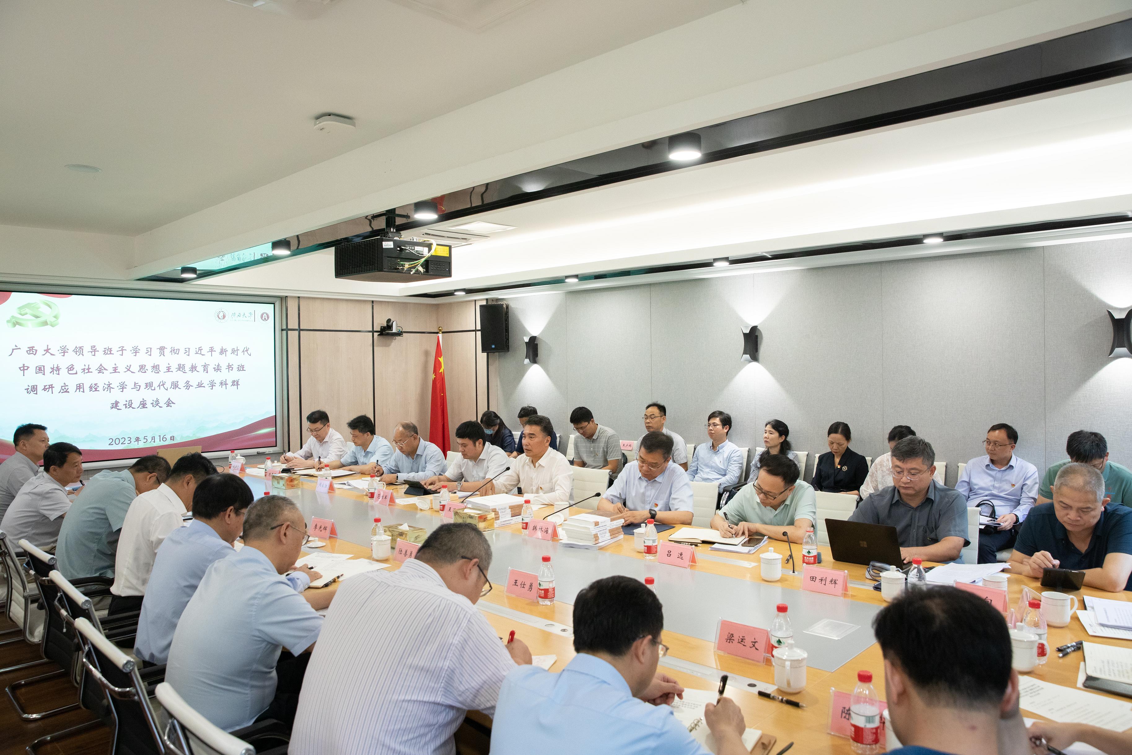 5月16日上午,校领导班子学习贯彻习近平新时代中国特色社会主义思想主题教育读书班到学院开展调研,自治区政协副主席、校党委书记王乃学主持召开座谈会,全面了解应用经济学与现代服务业学科群建设情况,听取意见和建议,探讨加力推进学科群发展。