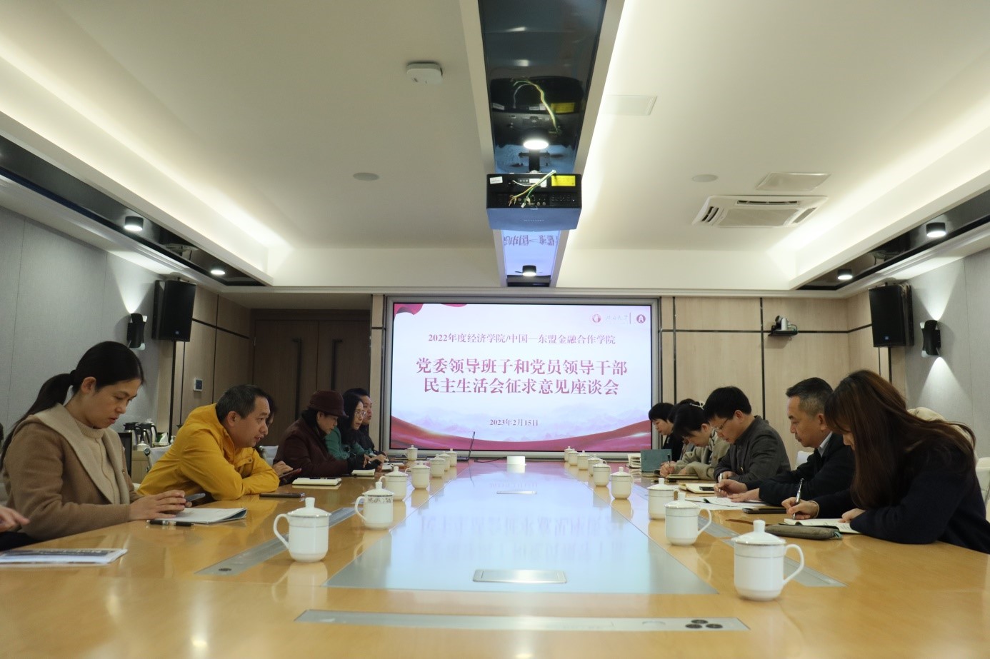 /中国-东盟金融合作学院在学院102会议室召开2022年度党委领导班子和党员领导干部民主生活会。校党委常委、副校长田利辉和校党委巡察组傅忠到会指导工作,学院党委领导班子成员和师生党员代表参加会议,民主生活会由学院党委书记陆善勇主持。