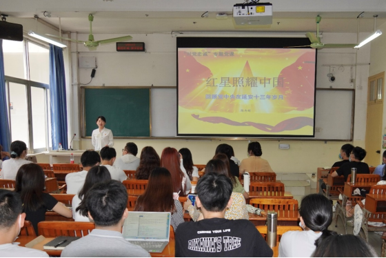 /中国—东盟金融合作学院博士生党支部、研究生2019级第三党支部和研究生2021级第一党支部的党员们齐聚东校园10B-305教室,院党委副书记、纪委书记陈卉娟为大家讲授了专题党课“红星照耀中国”。