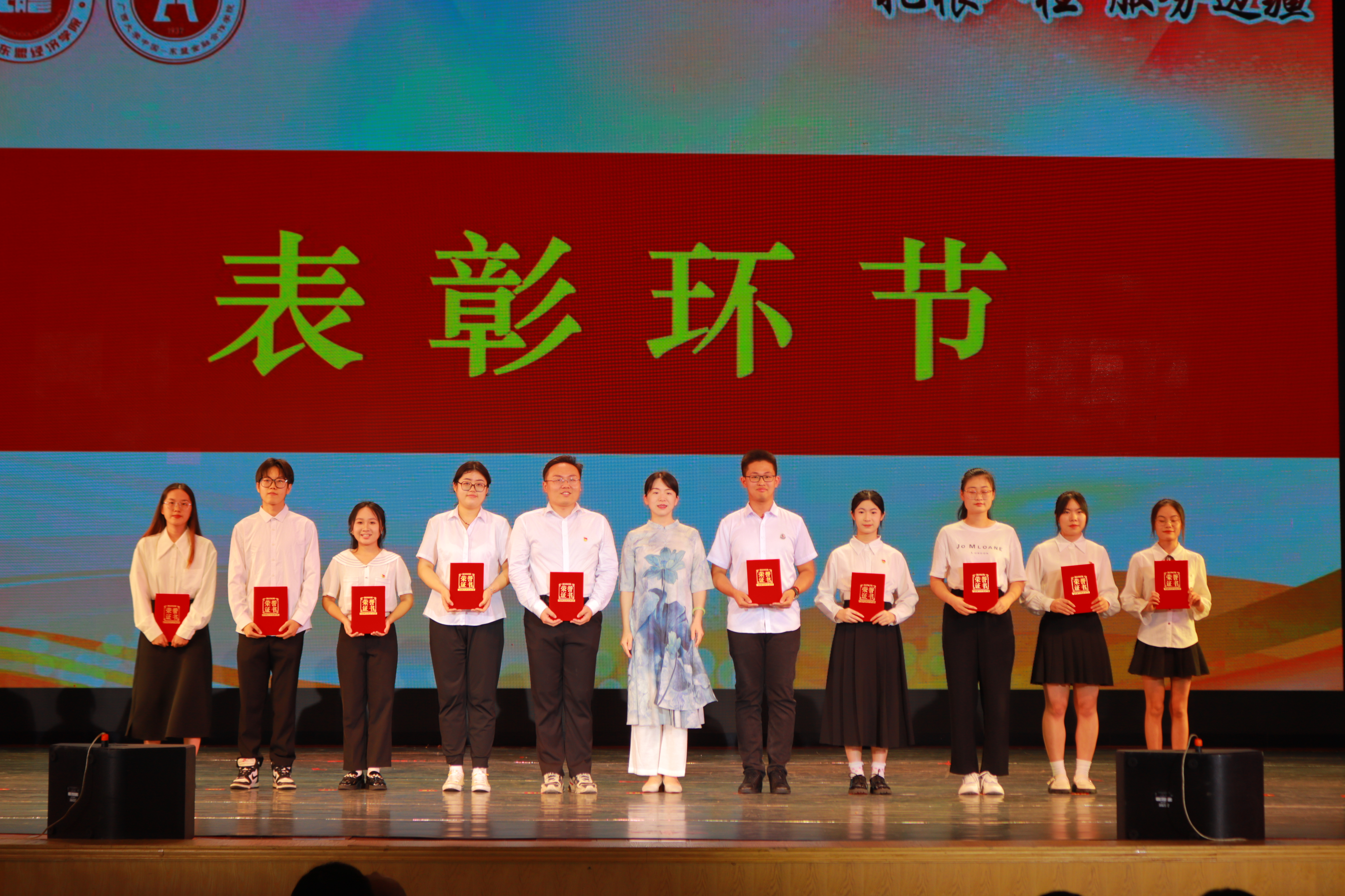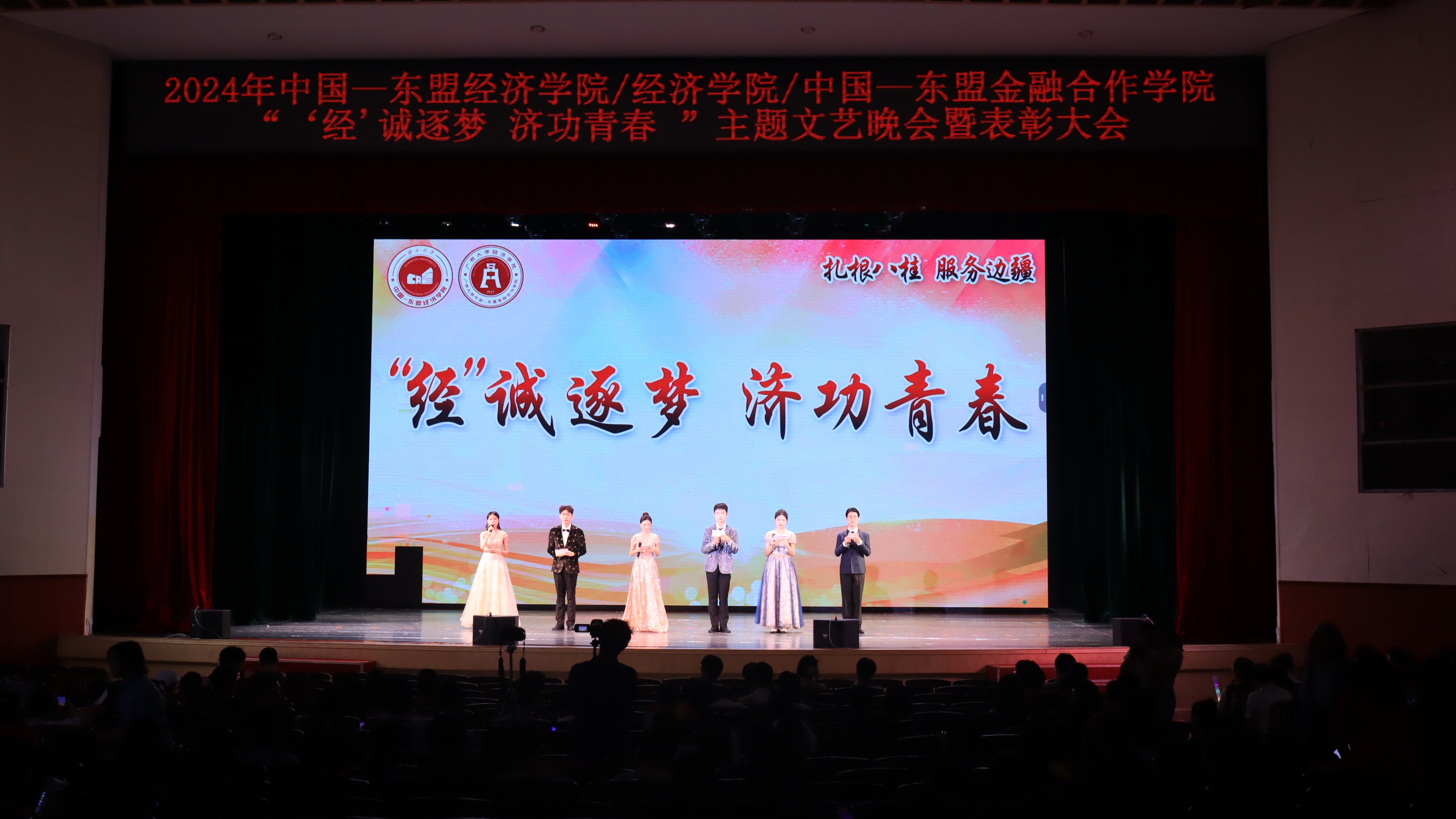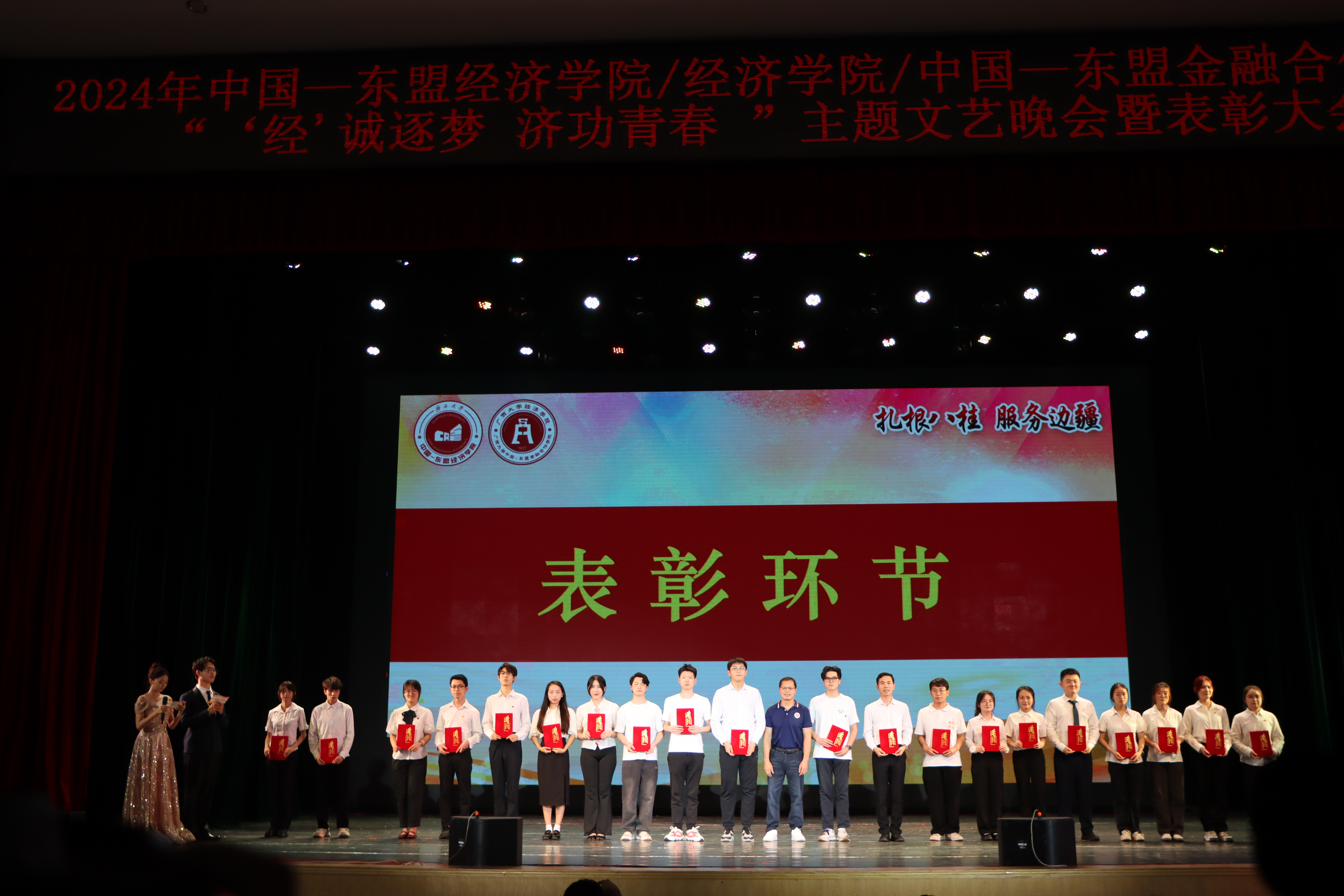 2024年“‘经’诚逐梦,济功青春”主题文艺晚会暨表彰大会在学校大礼堂顺利举行。学院党委常务副书记罗诚、党委副书记陈卉娟、副院长梁权熙、学工组全体辅导员和学院部分教师出席活动。