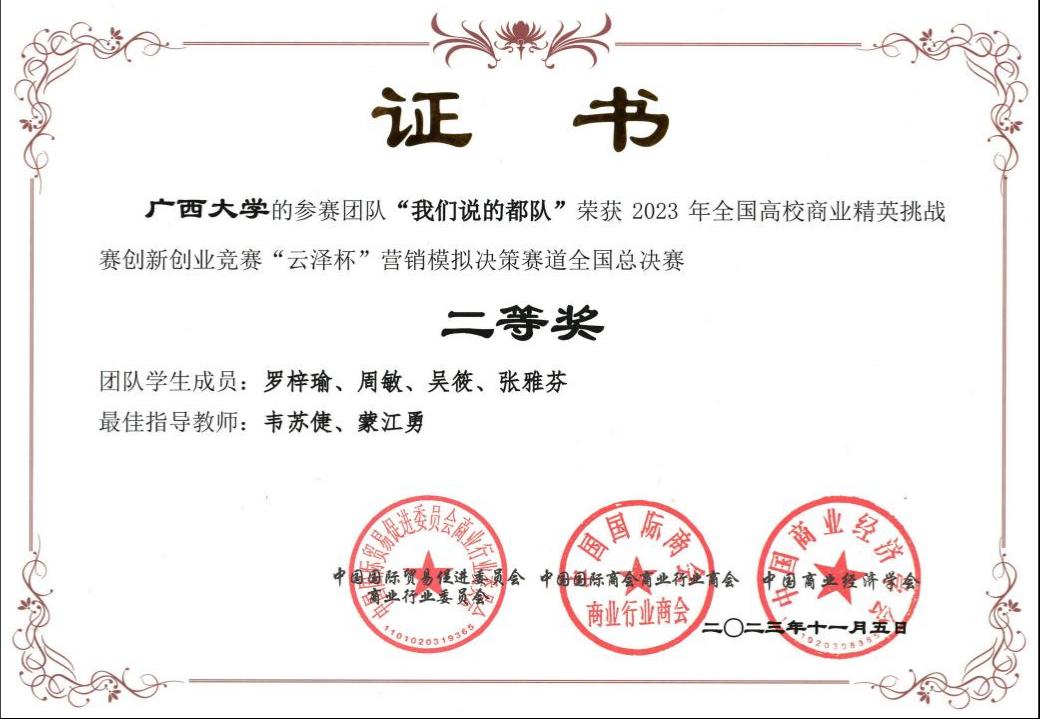 近日,2023年全国高校商业精英挑战赛创新创业竞赛“云泽杯”营销模拟决策赛道全国总决赛落下帷幕。该赛项从校赛到全国总决赛共计2000多支队伍参赛,在全国预选赛中,麻豆瓜网