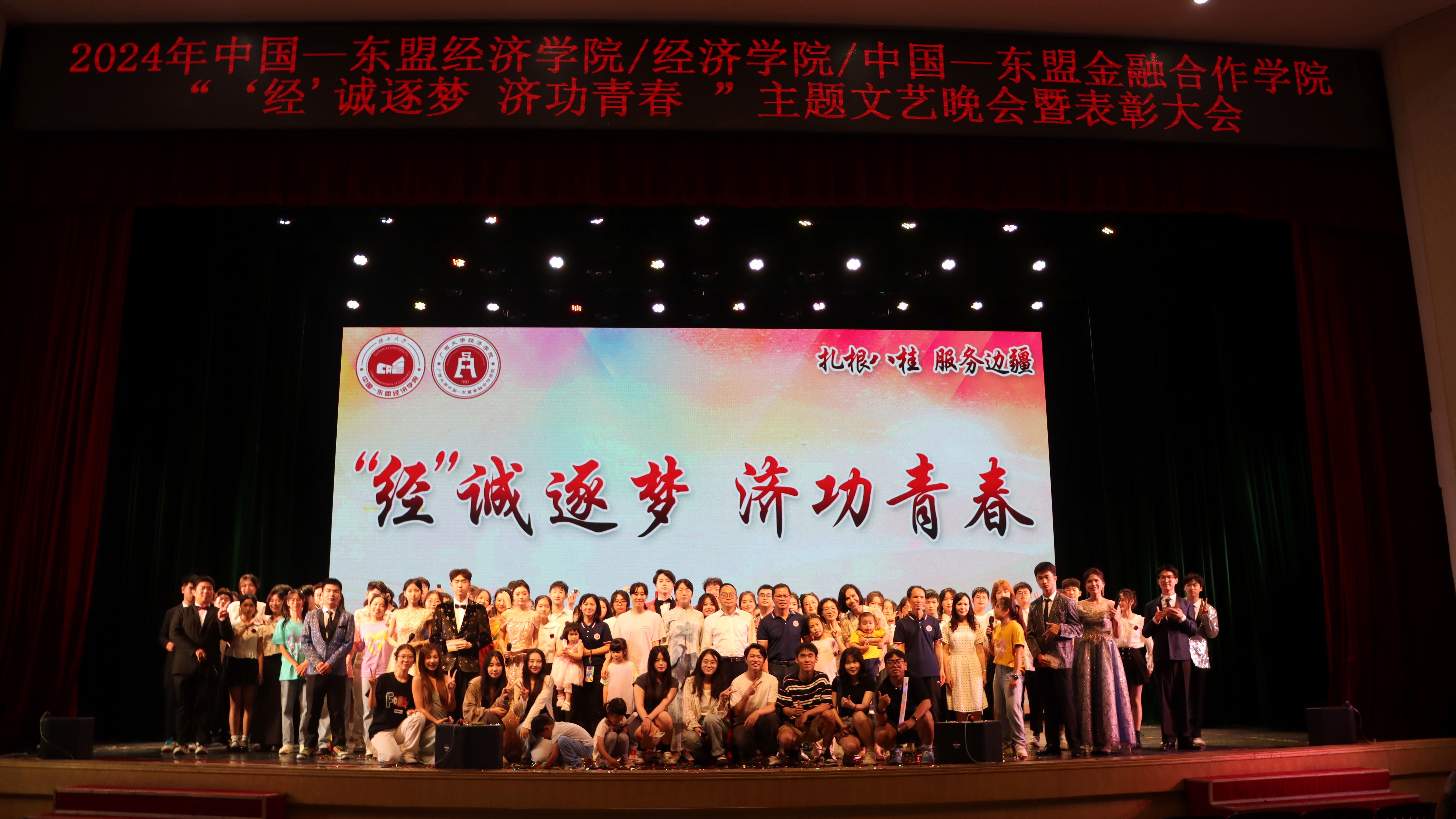 2024年“‘经’诚逐梦,济功青春”主题文艺晚会暨表彰大会在学校大礼堂顺利举行。学院党委常务副书记罗诚、党委副书记陈卉娟、副院长梁权熙、学工组全体辅导员和学院部分教师出席活动。
