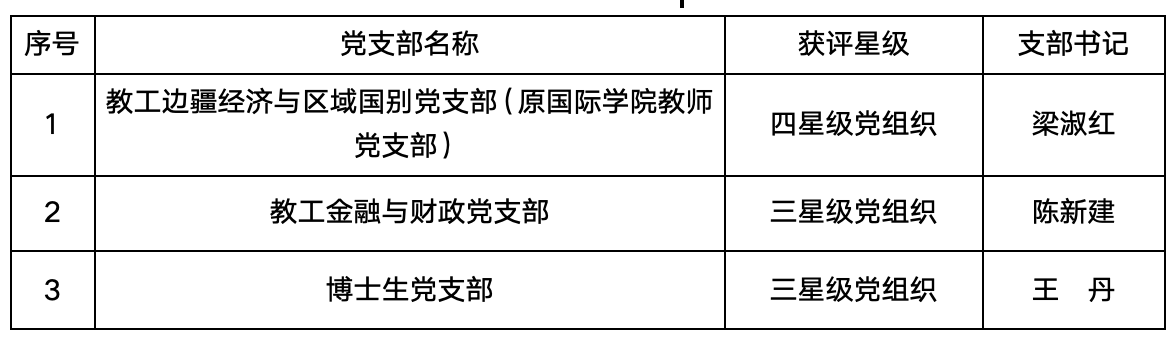 目前,学院共有党员503人,其中,教职工党员85人,学生党员418人。学院党委下辖15个党支部,其中教工党支部5个,学生党支部10个。广西高校“双带头人”教师党支部书记工作室2个,自治区级星级党支部3个。