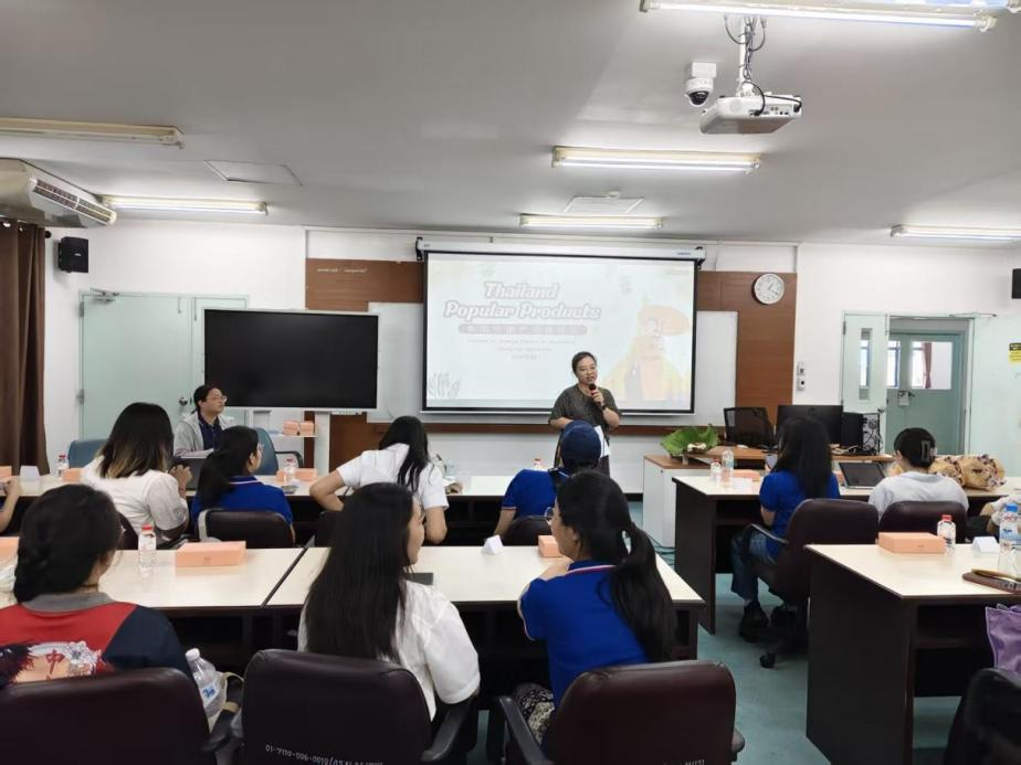 The opening remarks were delivered by Ms. Gu Mengyu from the Department of Chinese Language, Faculty of Humanities at Chiang Mai University, who warmly welcomed the Guangxi delegation and highlighted the geographic and cultural ties between the two countries. She expressed hope that the academic dialogue would help young people from both universities deepen mutual understanding and serve as a bridge of China-Thailand friendship. This was followed by Mr. Li Xiongying, Associate Dean of CAMT, who emphasized the importance of the “product + culture” collaboration model in enabling students to showcase professional competence while also exploring the cultural heritage behind local products.