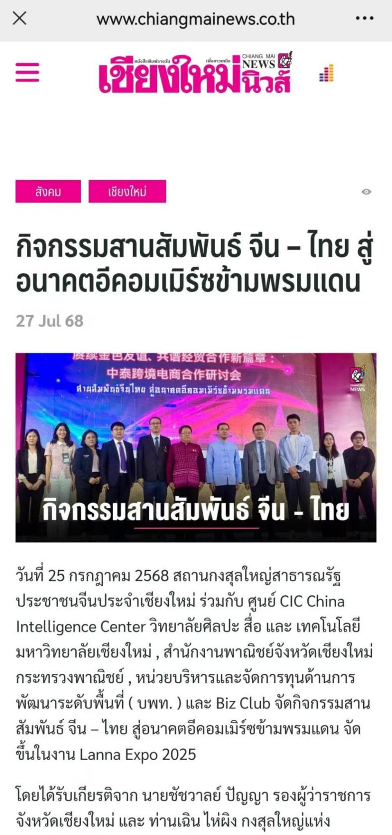 Ms. Yu Na, the faculty lead of the visiting group, stated in an interview with local media Chiangmai News——“This year marks the 50th anniversary of diplomatic relations between China and Thailand—the 'Golden 50 Years of China-Thailand Friendship.' We are honored to have been invited to participate in the 2025 Lanna Expo and the Cross-Border E-Commerce Cooperation Seminar. We extend our sincere gratitude to the expo organizers and Chiang Mai University, and wish the expo a complete success! Through these events, the students have not only expanded their global perspective and deepened their understanding of the Thai economy and Sino-Thai trade, but they have also applied their academic knowledge in real-world settings. By engaging deeply with Thai exhibitors and professionals involved in China-Thailand trade, they have helped local enterprises better understand the Chinese market, e-commerce models, and consumer preferences—ultimately contributing to the growth of trade and connectivity between the two countries.”