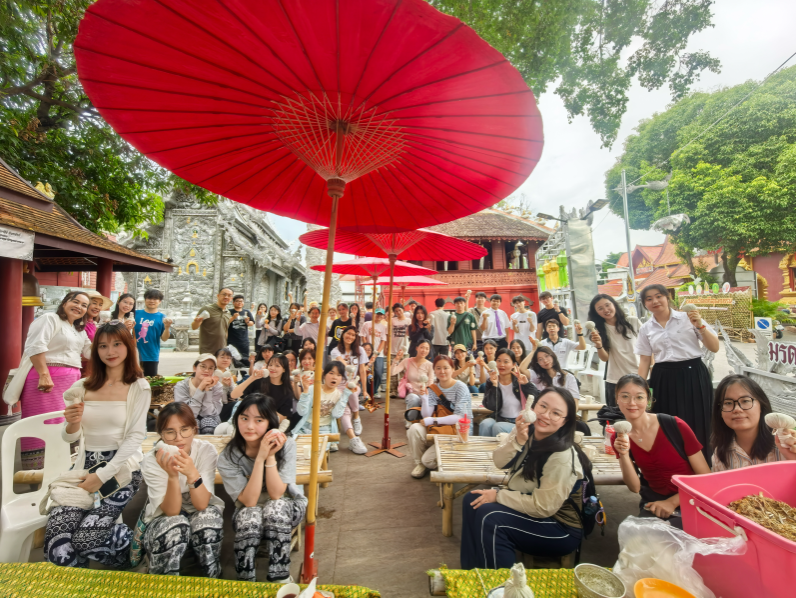 In addition to academic content, the university has arranged multiple cultural immersion activities for the visitors—including a tour of the campus technology park, an experience of traditional herbal hammer making at Wat Sri Suphan, participation in the Lanna Expo, and a Thai cooking class. These activities translate cross-cultural communication theory into practical training, significantly deepening the students’ understanding of Thai social customs, business traditions, and local lifestyles.
