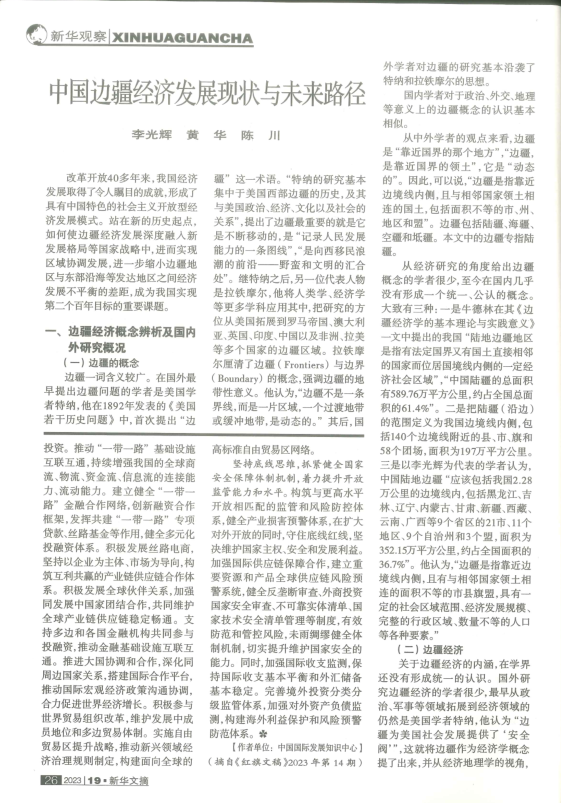 麻豆瓜网 李光辉教授、黄华博士研究生撰写的论文“中国边疆经济发展现状与未来路径”全文被《新华文摘》(2023年第19期)转载,该论文曾发表在《中国经济报告》(2023年第3期)。
