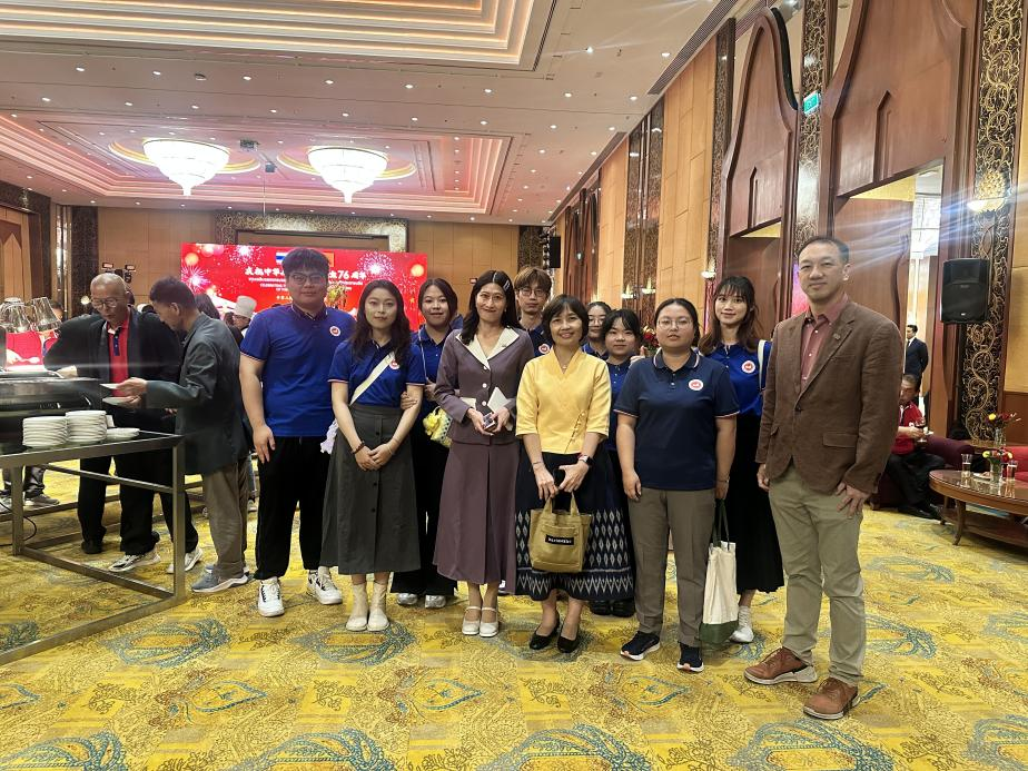 暑期赴清迈大学交流访学团在Shangri-La Chiang Mai(清迈香格里拉酒店)参加了庆祝中华人民共和国成立76周年国庆晚会。清迈主要侨领与商会代表、中资机构代表及留学生等各界人士出席本次活动,共同庆贺共和国华诞。