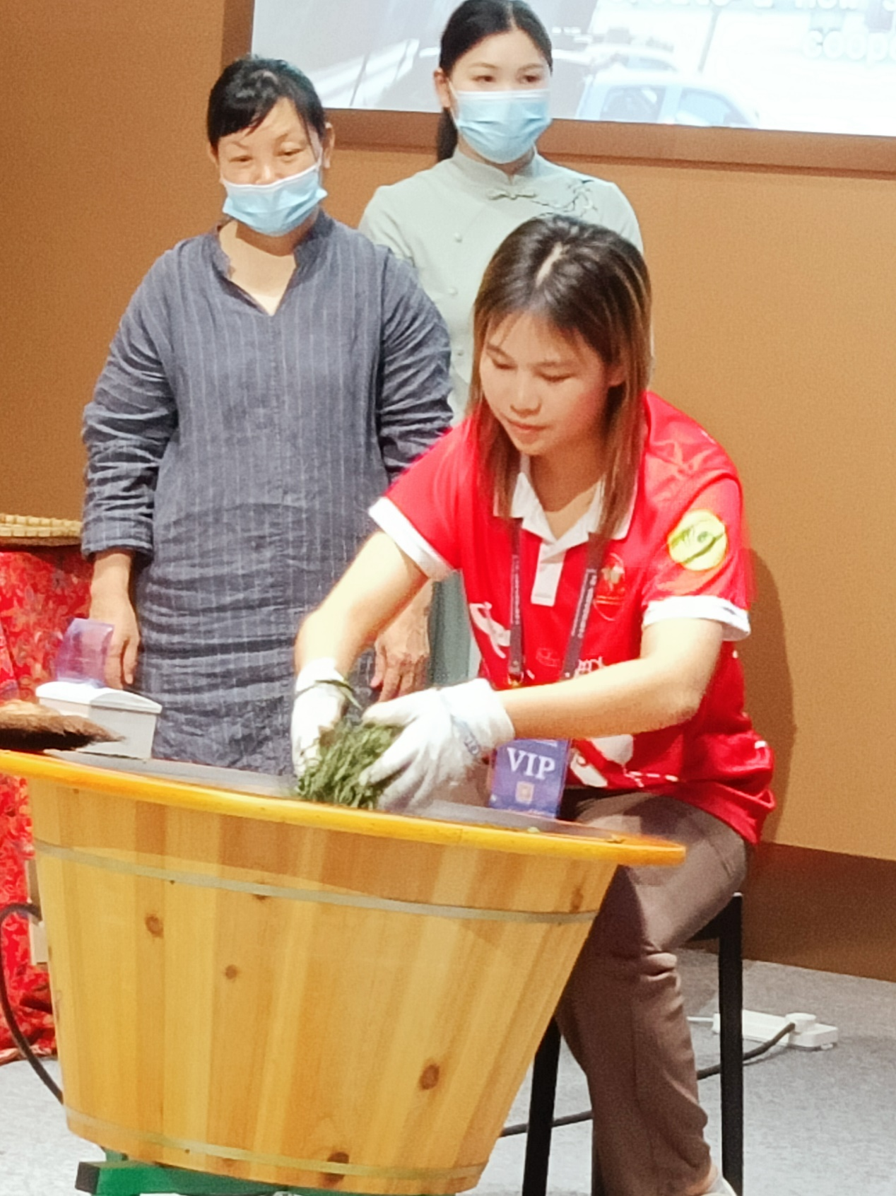 参观结束后进入广西特色文化体验环节。师生们在茶艺工作坊中亲身体验广西传统制茶技艺,从鲜叶揉捻、滚茶到品鉴,全程体验传统制茶工艺,不少学生兴致盎然地参加互动,学生们深入感受了中国茶文化的魅力。