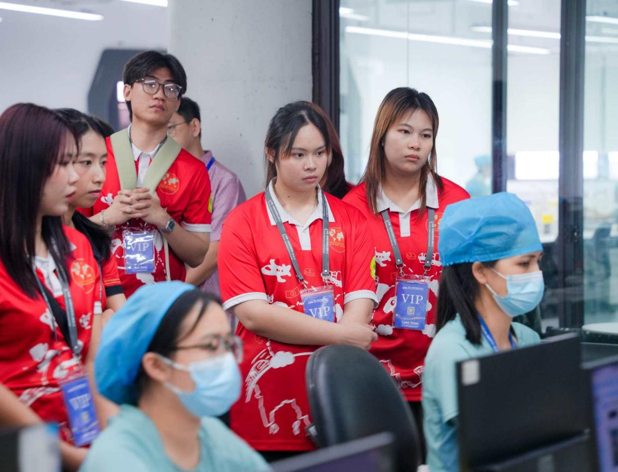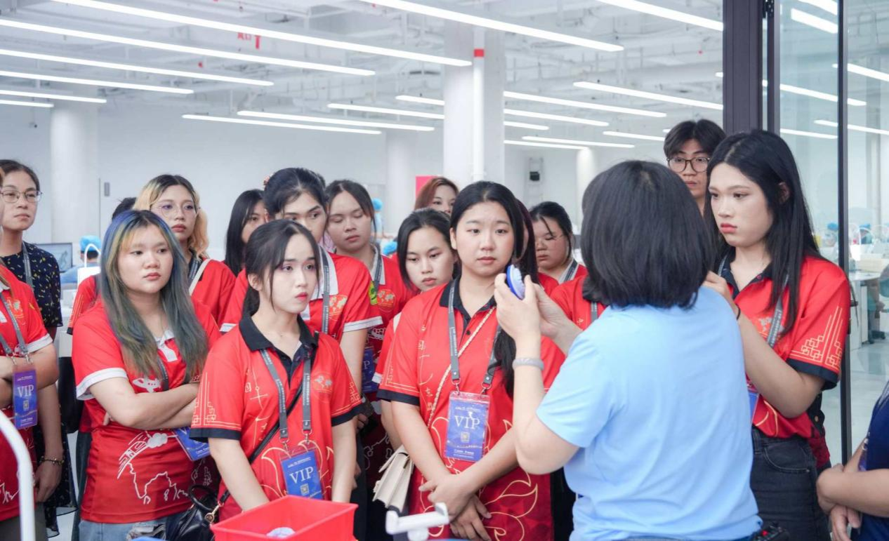 在工作人员的引导下,国贸(中泰)班师生们首先参观了中新南宁国际物流园园区的整体结构和配套设施。该园区系统化、集成化地规划了物流各工作的环节,形成类似"微型村落"的运营模式,将全流程集中于园区,并按功能分区以便部门间高效衔接。随后,师生们走进区内的靖佳科技数字化超级工厂,实地了解生产过程,并首次接触口腔美容产品(美牙),国贸(中泰)班学生们对创新医疗器械的生产流程和智能化的管理模式表现出浓厚兴趣。