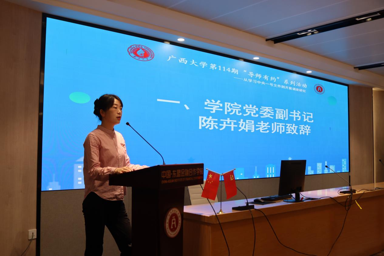 金融系副教授陈新建,主题为“从学习中央一号文件到开展调查研究”。学院党委副书记、纪委书记陈卉娟,团委书记王海希出席本次活动。