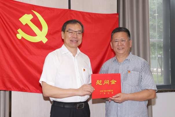 在职教师党员樊凡教授,并向党员同志们致以节日的问候。校党委常委、组织部部长冼季夏,校长助理王宁章,党办校办副主任廖文丹陪同慰问。