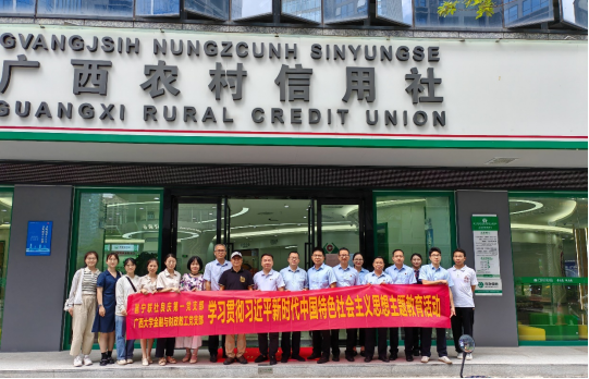 /中国-东盟金融合作学院教工金融与财政党支部和南宁市邕宁信用联社良庆第一党支部在邕宁区那马镇联合开展主题党日活动。主题党日活动分为学习研讨和开展调查研究两个环节,在深入学习贯彻习近平新时代中国特色社会主义思想的基础上,进一步围绕金融服务实体经济、普惠金融创新、校企联合人才培养等方面开展深入具体的调查研究。