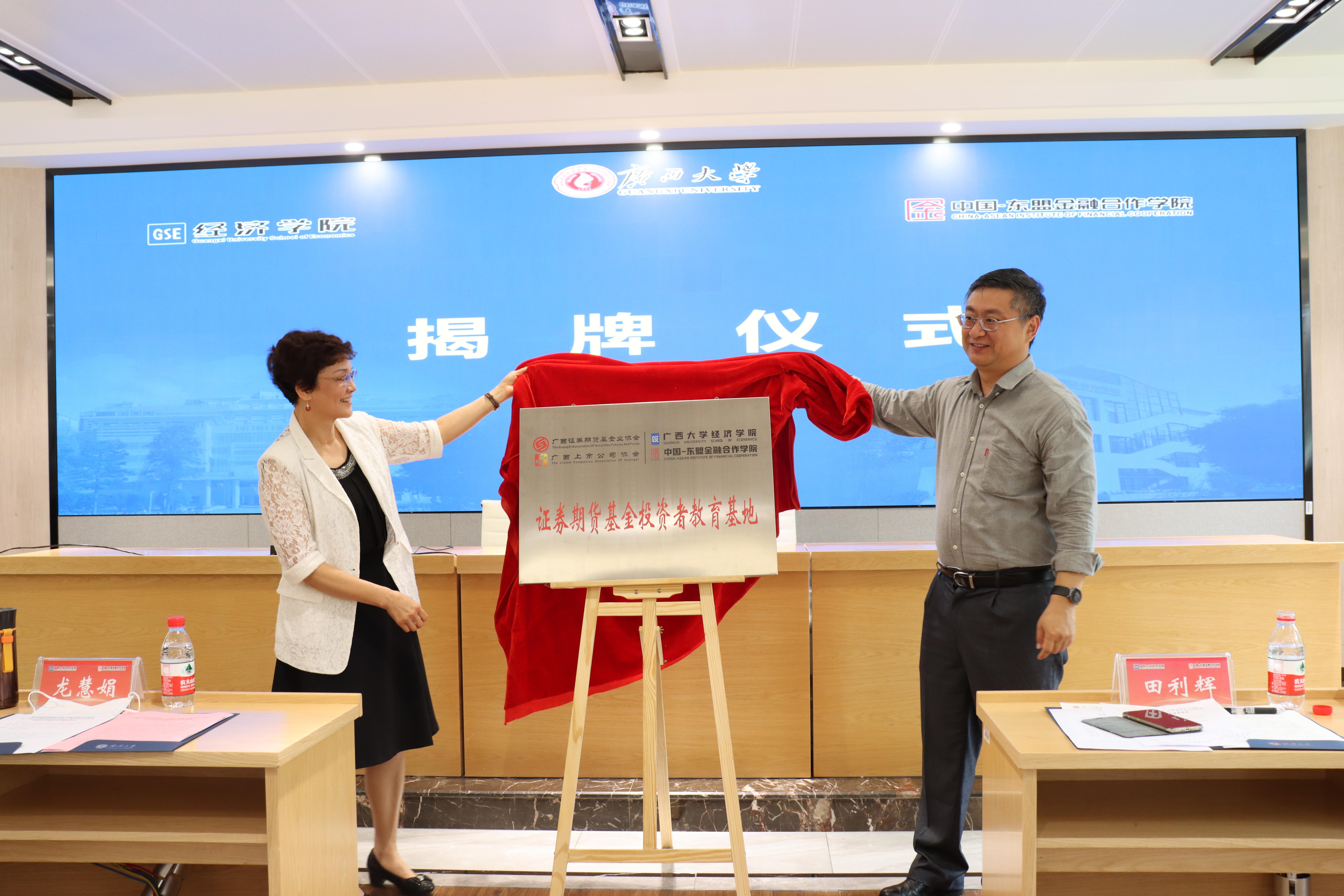 广西证券期货基金业协会副会长兼副秘书长龙慧娟表示,本次签约仪式及揭牌仪式标志着双方合作进入新阶段,同时也是推进校企合作进程的里程碑,是双方优势互补,信息共享,互利互赢的开始,下一步将充分发挥投资者教育的示范带头作用,推动金融知识普及,助力教育培养和金融素养的提升,夯实广西金融人才建设的基础,更好地推进高校科研创新服务实体经济的发展,实现广西资本市场发展的新跨越。
