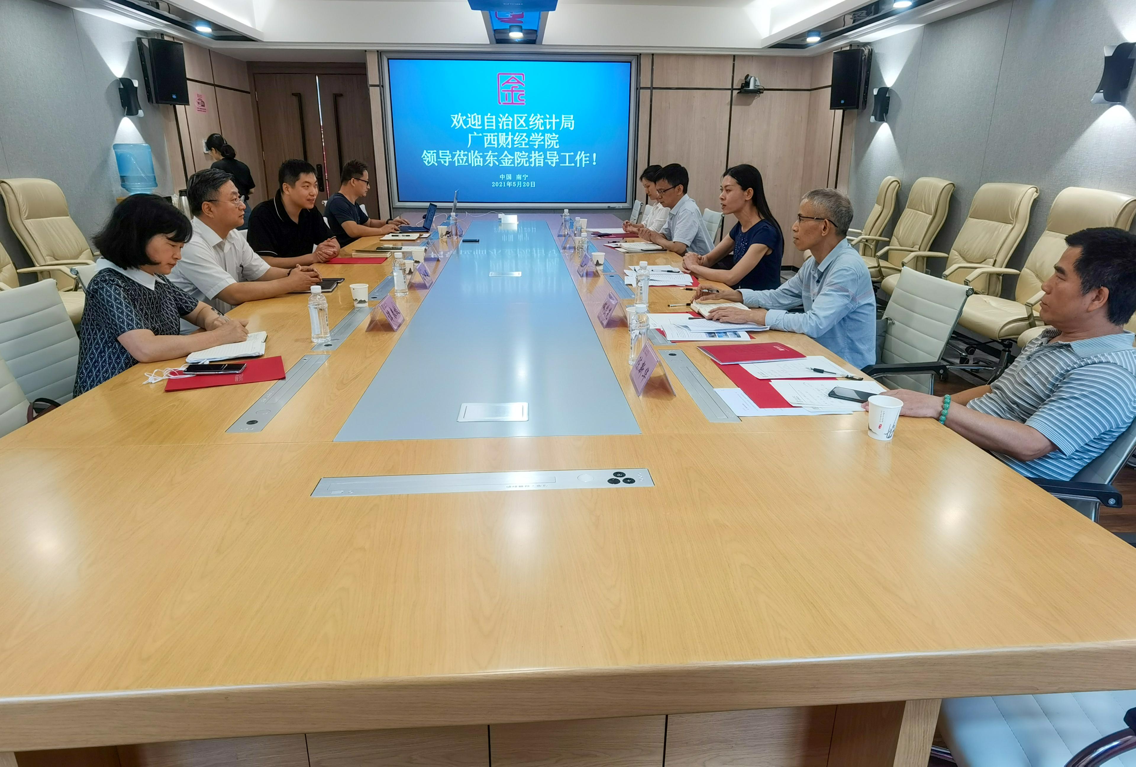 会议就统计工作与学院发展等方面内容进行了交流。田利辉副校长强调了统计数据对于社会经济和民生的重要性,陈懿常务副院长向与会者介绍中国—东盟金融合作学院的成立背景以及办学目标与任务。周旻副局长详细了解了东金院的筹建过程、政策支持、运行机制、师资规模、招生计划和生源结构等办学情况,并介绍自治区统计局拟筹建中国—东盟统计学院的设想。双方表示今后将进一步加强合作与交流。