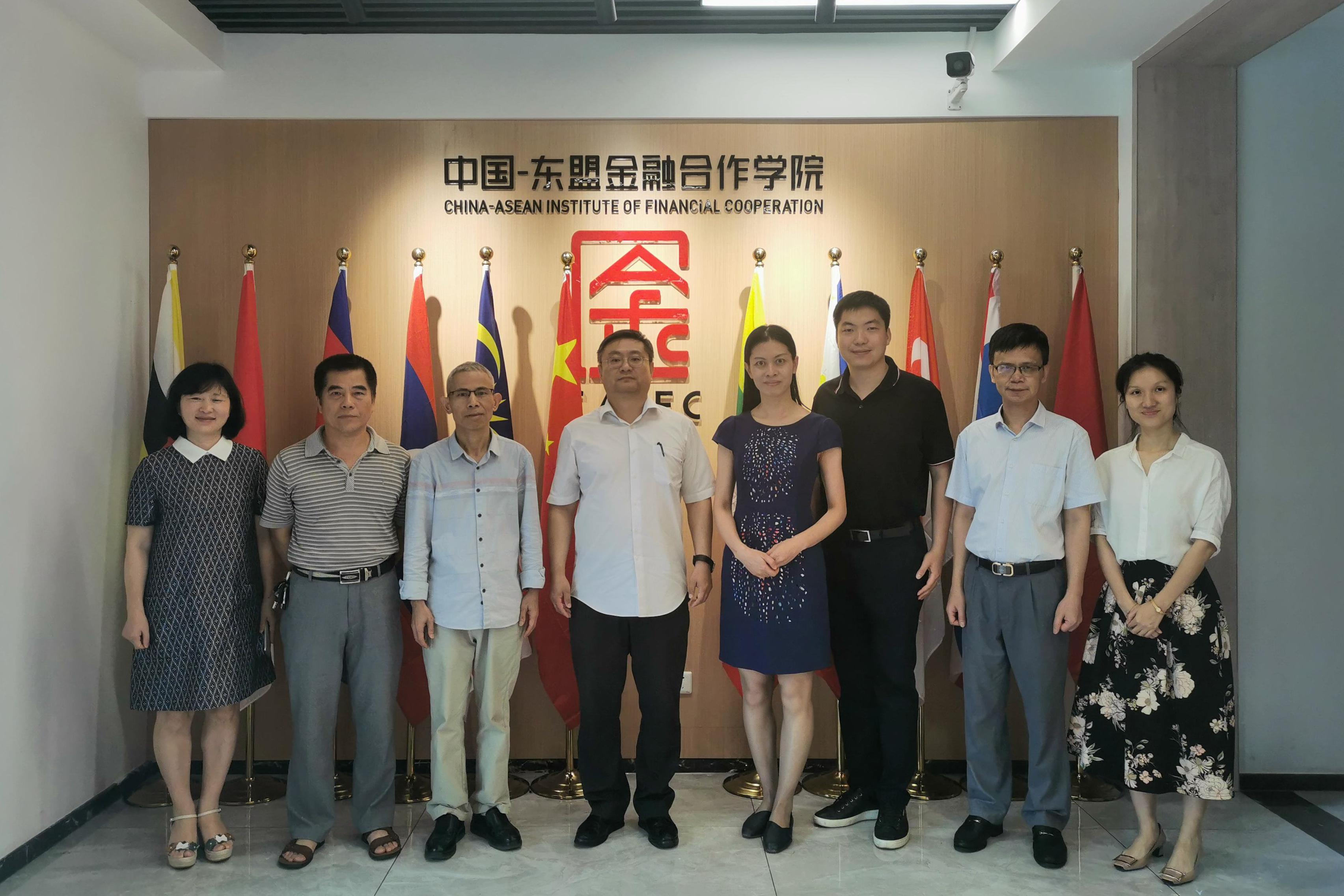 党委常委、副校长田利辉在中国—东盟金融合作学院与自治区统计局副局长周旻、广西财经学院信息与统计学院书记何庆光一行开展工作会谈。学院副书记、常务副院长陈懿,副院长谭春枝参加会谈。