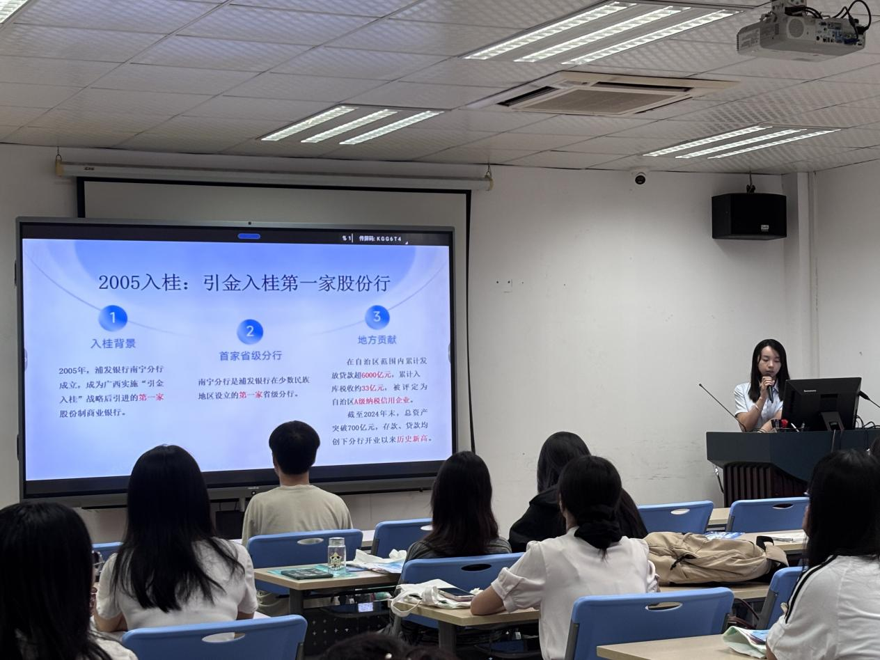 浦发银行南宁分行代表通过生动的讲述,系统展示了银行的发展历程、麻豆瓜网、核心业务板块以及清晰的员工职业发展通道与具有竞争力的薪酬福利体系。宣讲内容不仅勾勒出浦发银行作为现代金融机构的宏伟蓝图,更传递出对青年人才成长的真切关怀。