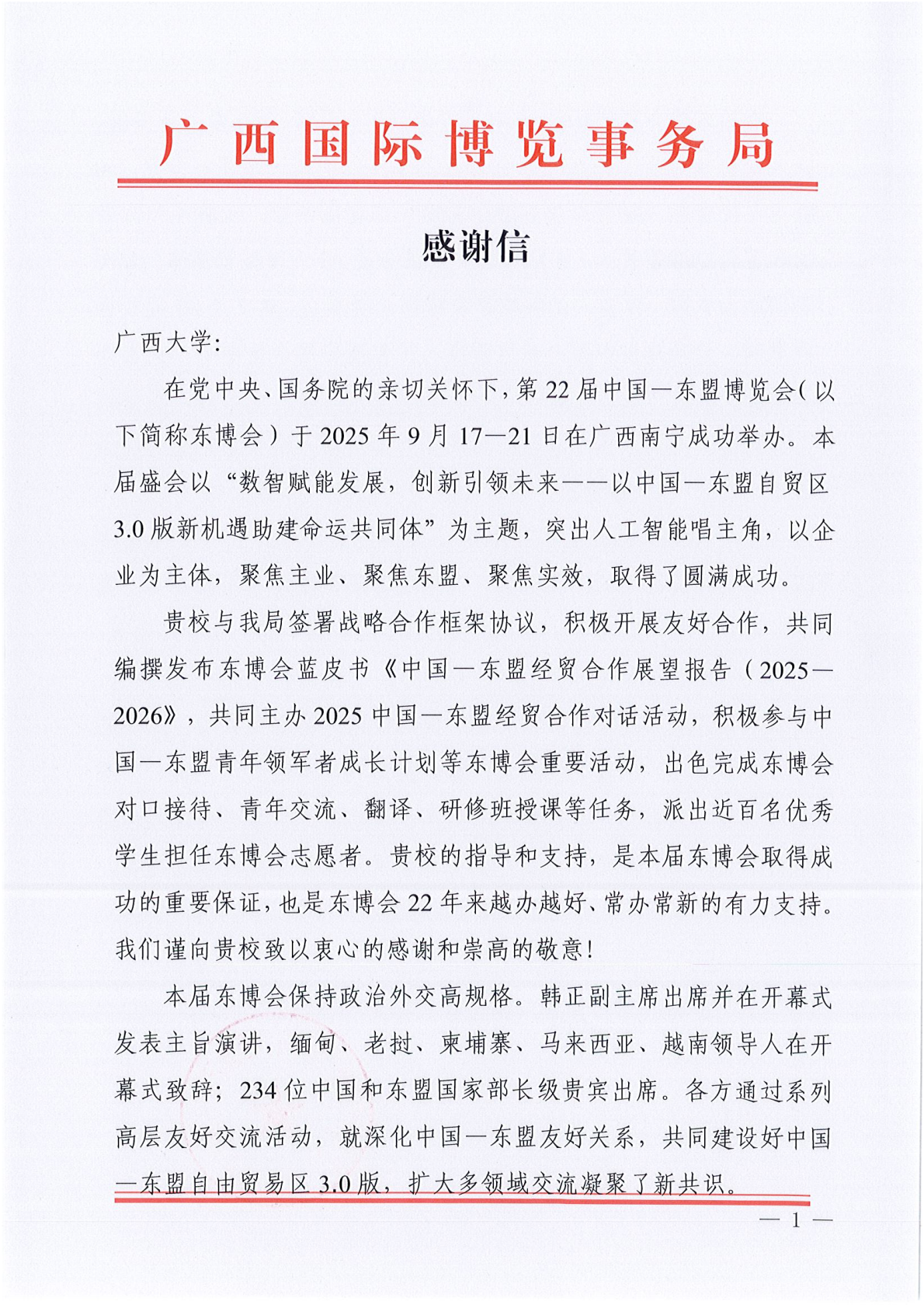 志愿者在第22届中国—东盟博览会(以下简称“东博会”)期间的工作表现给予了高度肯定。