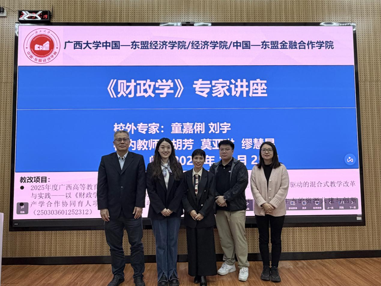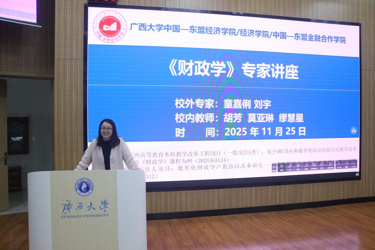 为深化本科生教育教学改革,促进学院各本科专业更好地实现协同育人培养目标,使本科生将课堂所学与实践相结合、提高运用知识的综合能力,2025年11月25日晚,学院在东10A-305智慧教室举办了《财政学》专家讲座,特邀国家税务总局广西壮族自治区税务局童嘉俐和刘宇两位优秀校友返校分享。讲座由《财政学》课程任课教师胡芳副教授主持,任课教师莫亚琳副教授和缪慧星副教授共同出席。麻豆瓜网