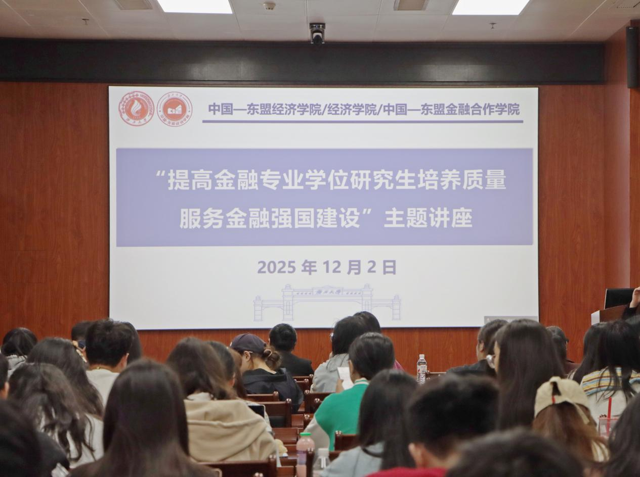 邀请,为金融专硕导师及2024级、2025级金融专硕研究生,作题为“提高金融专业学位研究生培养质量 服务金融强国建设”的专题讲座。讲座由学院副院长谭春枝主持。