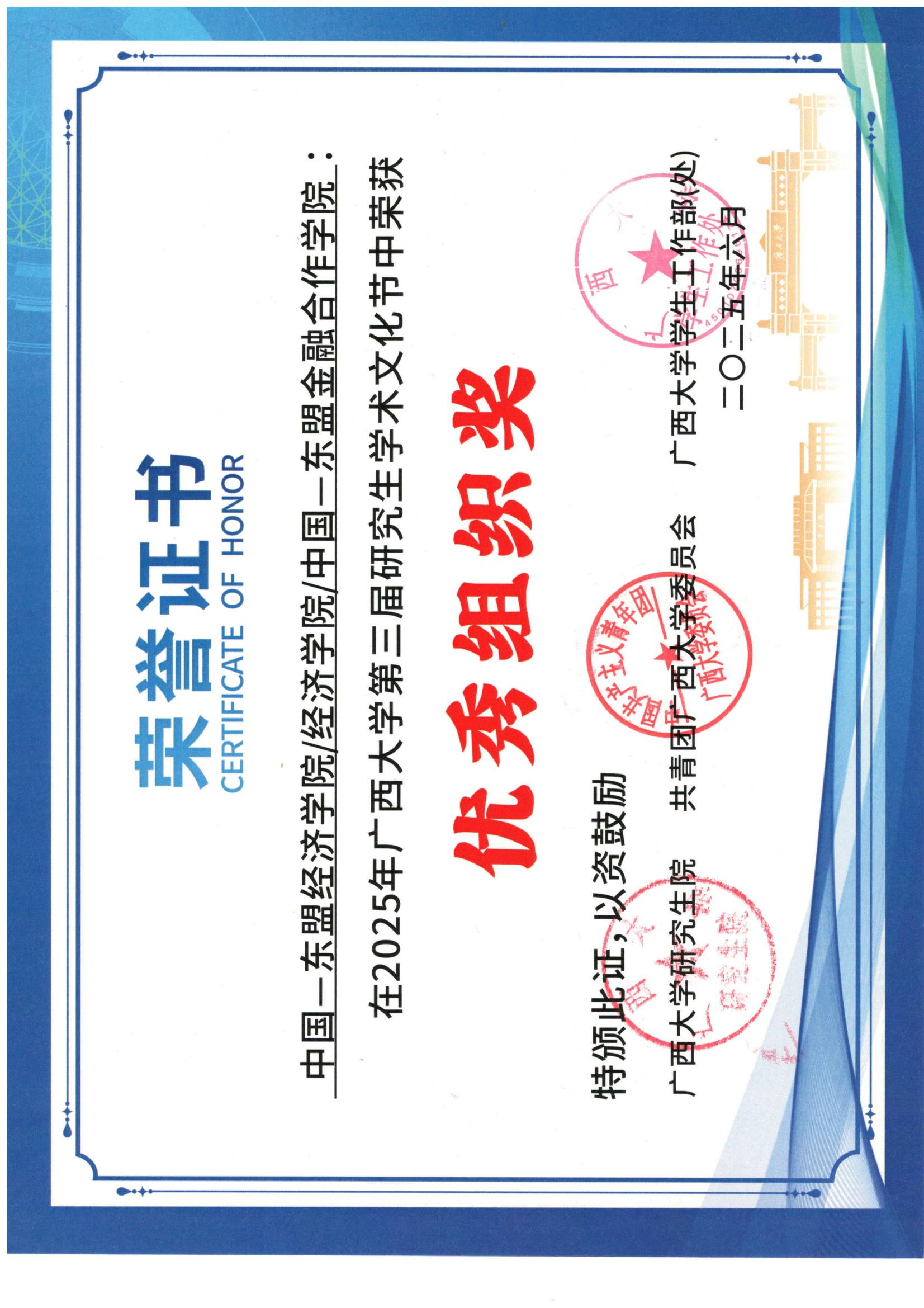 本院积极营造格物致知、勇担使命的育人氛围。在多项A+和A类学科竞赛的国家级赛事中,学生累计获奖国家级奖项118个;获学校第五届“青荷杯”科技学术节优秀组织奖,院研究生会获得学校首届“研究生跨学科论坛”优秀组织奖;院学生会被评为年度学校“十佳学院学生会”;获“三月三”铸牢中华民族共同体意识民族文化节优秀学院奖;同时,本院连续三年均获学校研究生学术文化节优秀组织奖。近五年,本院累计获评校级五四红旗团支部15个、优秀共青团干部75人、优秀共青团员130人,向上向善·好青年15人。这些鲜活榜样与丰硕成果,彰显了本院育人工作的扎实成效,激励着广大青年在服务边疆发展、面向东盟合作的新征程中共同进步。
