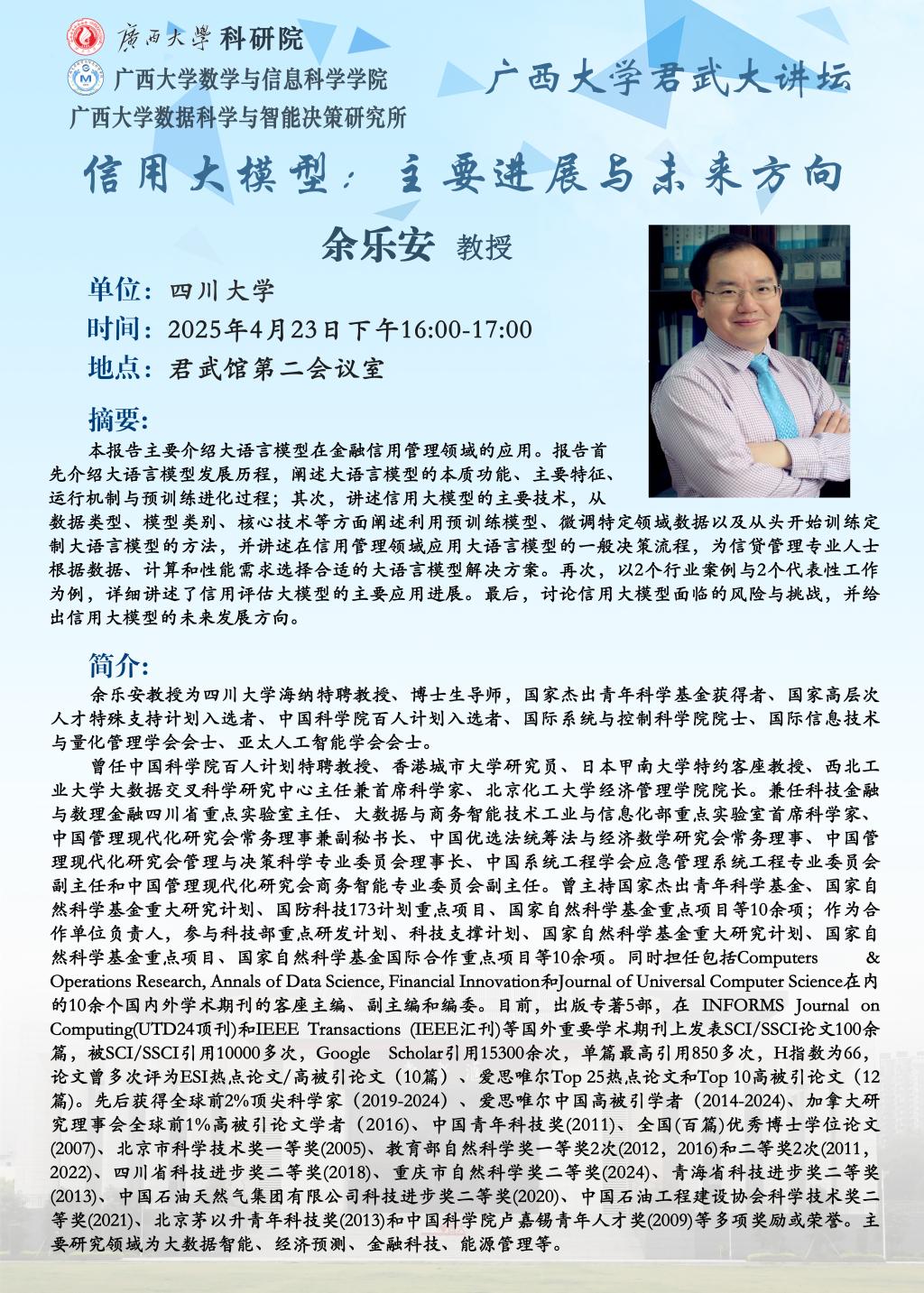 君武大讲坛:信用大模型——主要进展与未来方向
